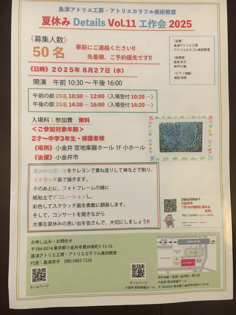 今年も恒例の「夏休み工作会」にピアノ演奏で出演させていただきます。今年は紙粘土を使った作品作りのようです。